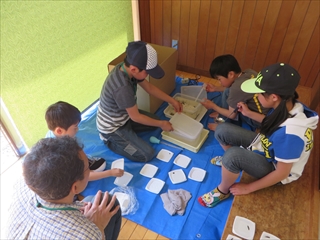 うぶかの郷近くの産ヶ沢川に、町内や近隣の市町より来てくれた子供たちに、ゲンジボタルの幼虫を放流していただきました。幼虫は川の生態系に考慮して参加者一人二匹づつ放流しました。 また、放流会終了後には、うぶかの郷の大広間で半田醸芳小学校の土曜学習会を兼ねた「ホタル学習会」を開催し、ホタルの生態の話を聞いた後、ペーパークラフトでホタルを制作しました。 |
