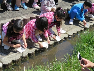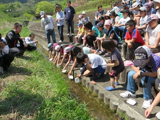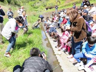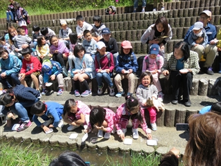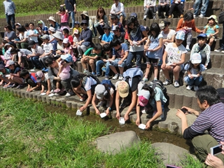 天気が心配されましたが、曇り空で気温もほどよく放流会には最適な日になり、多くの子どもたちに参加していただけました。 |