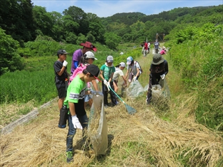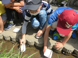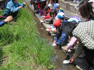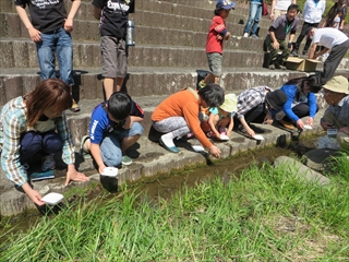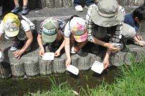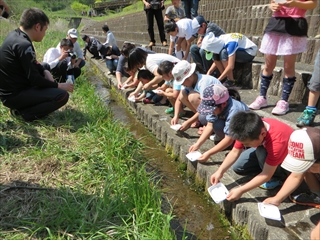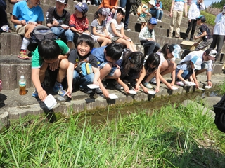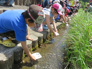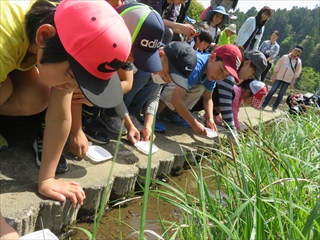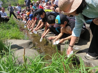 今回で7回目となる、ゲンジボタルの幼虫を産ヶ沢川に放流しました。 天候にも恵まれ、子どもたちも多数参加してくれました。 約3センチほどに成長した幼虫を一人2〜3匹づつそーと放流して、夏に舞うホタルに思いを馳せていました。 |