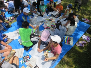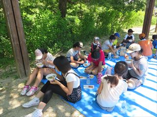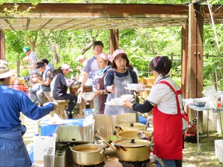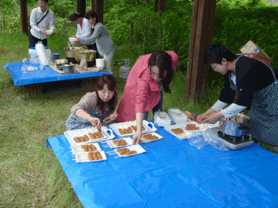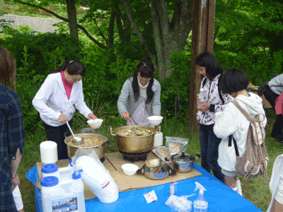 今年もホタル鑑賞シーズンの前に、地域の半田醸芳小学校の児童と保護者、教師の方々と会員の総勢60名ほどで、ホタルを観賞する場所などや通路を中心に、ごみ拾いや草むしりなどを行いました。 清掃活動終了後には、参加者全員で芋煮汁を食べ。また、子供達には竹灯籠の竹筒に自由に絵を描いてもらいました。 竹灯籠は、観賞に来られた方が暗がりでも安全に歩かれるように、足元を照らします。 |