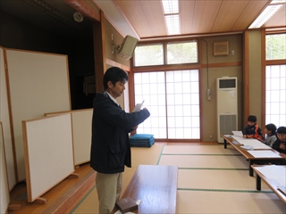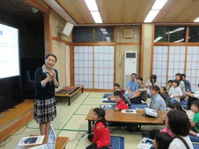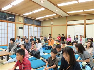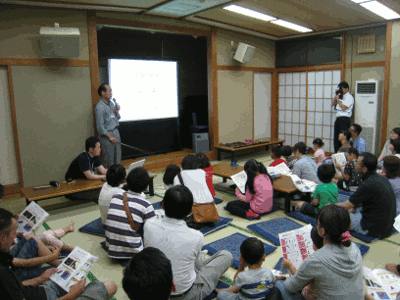 | ホタル学習会に参加した方々 | 籏野先生による説明 |