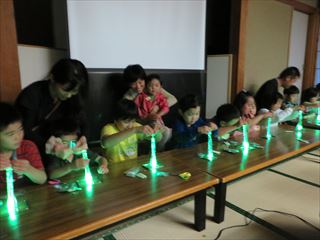 | ホタルの光を再現実験 | 懐中電灯を受け取ってホタル観察へ |
