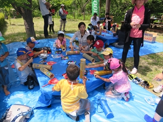 平成26年6月1日(日)開催 6月にしては異常なほどの暑さのなか、多くの子どもたちと保護者の方々に参加いただき、清掃活動を行いました。 6月中旬を過ぎるとホタルが飛び始め、来場される人に気持ち良く観賞していただけるように、主に川の周辺のゴミ拾いや草刈をしました。 清掃終了後には、振舞われた芋煮汁と玉こんにゃくを参加者全員で食べ、子どもたちには竹灯篭つくり体験と絵付けをしていただきました。 竹灯篭は、ホタル観賞の時に暗がりの足元を照らす誘導灯の代わりとして設置されます。 |