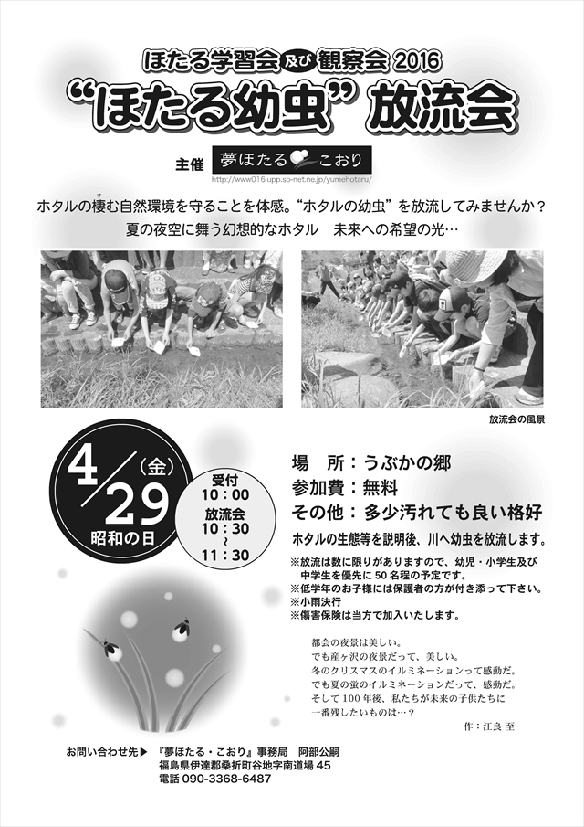 2012年“ホタル幼虫”放流会4月29日(日)開催 |