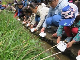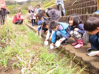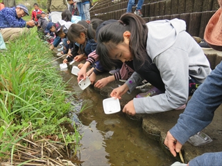 桜が満開に咲き、曇り空のほどより天気の中、今年で8回目となる「ほたる幼虫放流会」を開催したところ、多くの小学生などの子どもたちと、保護者の方など約60名の人に参加していただき、産ヶ沢川にゲンジボタルの幼虫を約70匹放流しました。 放流した幼虫は、6月中旬から7月上旬に成虫となり夏の夜空で綺麗に光ってくれることと思います。 今回から、キッズ会員の子どもたちにも幼虫の取り分け作業や、会場の清掃など準備作業にも参加してもらいまた。 |