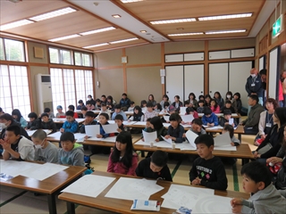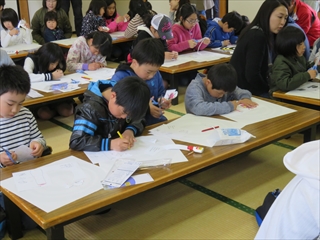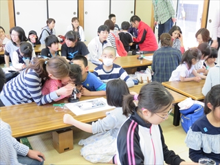 | 受付開始時間前より早き子どもたちが集まってくれました。 | 開会式の様子 |
