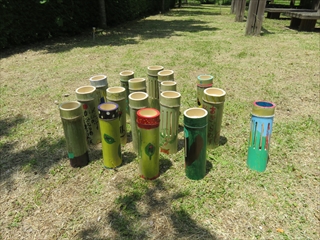 | 竹灯籠に絵付けしてます | 竹灯籠を設置しました |